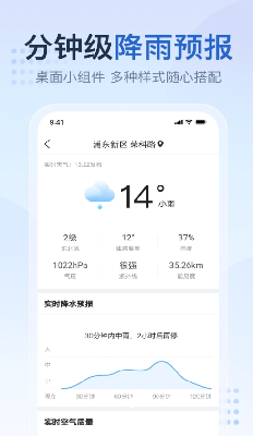 短时预报:精准、及时预报您所处位置天气情况,实时降雨提醒,出门、晾衣必备。