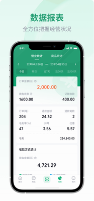 多维度报表统计,全方位助力店主分析经营状况2265,图表统计,数据走势更清晰,店主可实时掌控经营情况;
