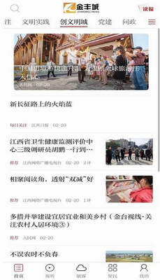 金丰城app最新版是一款优质的新闻资讯服务软件,内置超多精选权威城市新闻热点报道信息,在此本地新闻每日更新推荐阅读查看,在此资讯文章阅读界面排版非常简单整洁,多种优质视频直播新闻播放推荐聚集于此。app提供了丰富的本地资讯内容,覆盖了政治、社会、经济、文化等多个领域。用户可以随时了解最新的新闻动态,掌握城市发展的方向和脉搏。还提供了便捷的生活服务,包括户外活动、美食推荐、电影票务等,方便用户生活各个方面的需求,快来下载试试吧。