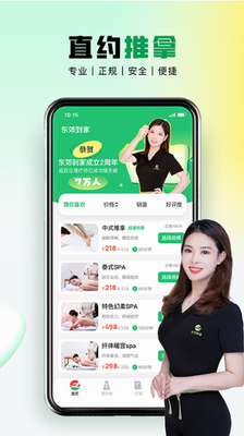东郊到家app官网版是一款专业的上门康复推拿、养生服务平台的App。无论是中式推拿、泰式SPA还是淋巴排毒,你都可以在这里找到丰富多样的服务项目。用户可以通过手机上app轻松线上预约服务,只需结算服务账单,专业人员将在24小时内为您提供上门推拿服务。用户还可以自由选择技术进行上门服务,一键下单,全新oto模式能够更加方便快捷,还有推拿详细介绍,有需要的话就来下载试试吧!