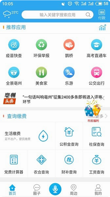 生活资讯:实时定位,汇集地市天气、美食、交通、生活资讯。