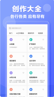 输入关键词,一键智能生成文案。支持教案设计,工作总结,日报,周报,新媒体文章、短视频脚本、电商产品描述、营销广告,活动策划等功能,提高工作效率。