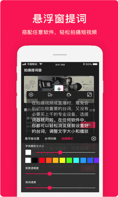 - 搭配抖音、快手、vlog等众多APP,完美解决拍摄过程中忘词,眼神飘忽等问题。