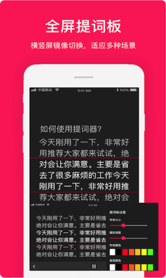 - 手机就是提词板,全屏展示提示内容,个性主题随意切换,可搭配外置摄像头、摄影机等专业设备,高端场景也可以轻松提词。