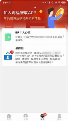 海运智联app官方2024版是一款专为海运用户开发的软件,用户在手机上可以很好的查看相关的运输订单信息,还可以对相关的订单进行办理和接取,实时的查看运输的行程数据,让船运用户可以更好的进行办公服务。其中各种业务功能是比较全面的,无论是物流车辆的调度还是扫码都是可以使用这个软件来完成的。还有多种其他功能可以选择,比如业务的查询,订单的查询,保险的购买等,需要的可以下载。