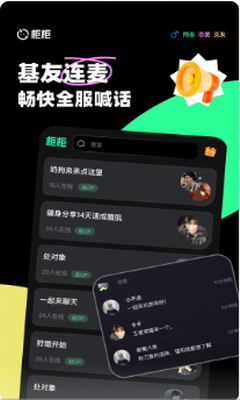 柜柜交友软件官方版是一个好用的语音交友app,软件中汇聚了国内专属炫彩礼物,还有各种cp让爱情充满仪式感,支持连麦,让你在平台上秀恩爱享受生活,让你没有顾虑想分享就分享!而且你们还可以通过视频面对面去互动,通过你的性别,年龄爱好,帮助你找到适合的对象,这个平台还支持在线评论的功能,你可以随时随地和别人进行互动,足不出户也能够认识更多有趣的人们,对这款软件感兴趣的话就来下载吧。