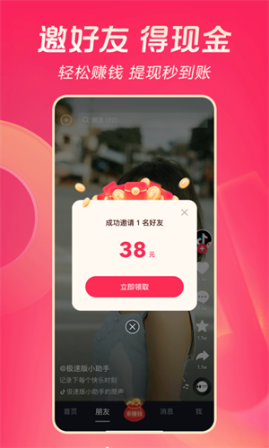 登录极速版,即可获得专属红包。看视频赚红包,看的越多赚的越多。邀请好友也能赚红包!