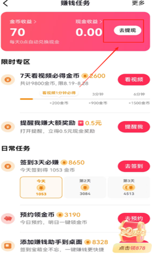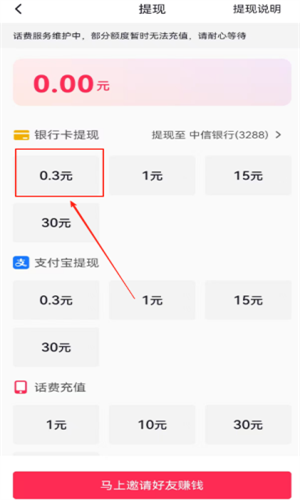 进入【提现】页面,选好提现的金额,点击【立即提现】