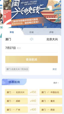 厦门航空app特色: