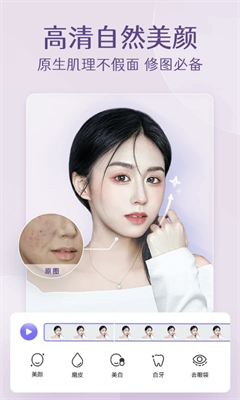 3、自然修眉,磨皮消除皮肤小瑕疵,光滑光亮,美肤无痕祛痘。