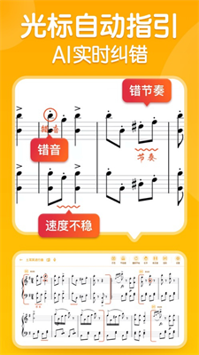 【精准纠错】精准识别错音错节奏等问题,实时纠错,帮你快速识谱。