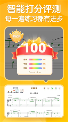 【智能测评】音准、节奏、速度综合评分。错误标注、回放、示范等帮你正确练习。