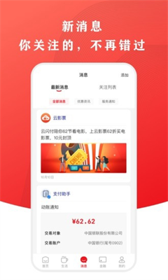 3、钱包瘦身:手机与银行卡合二为一,代替实体银行卡享受一拍(手机)即付的快速支付体验。