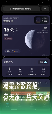 4、【气象与环境监测】:提供15日气象预报、极光预报、空气质量指数及光污染地图,让您在优质环境中观星。