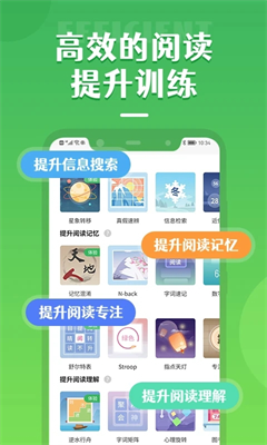 1、专业阅读训练平台,提升用户的阅读能力以及技巧,高效阅读,专注阅读。