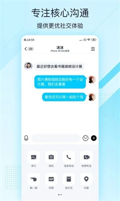 1、轻装出行,可以让沟通更轻松,愉快地享受视觉体验,精简功能,让用户轻松交流体验。