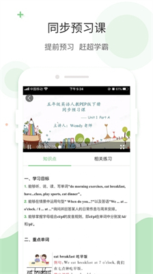 3、同步预习课,让孩子提前预习,赶超学霸!课本习题讲解,突破习题难关,轻松完成课后作业。