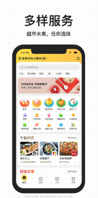 2、懒宅点餐:美食、水果、鲜花、下午茶、超市百货。