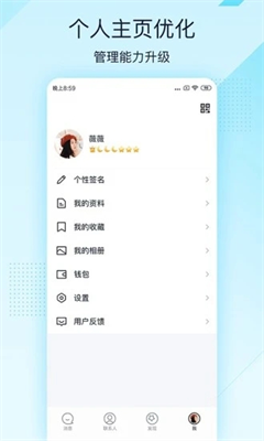 2、我”栏中有我的收藏、我的相册、我的文件、钱包、设置、用户反馈等选项。