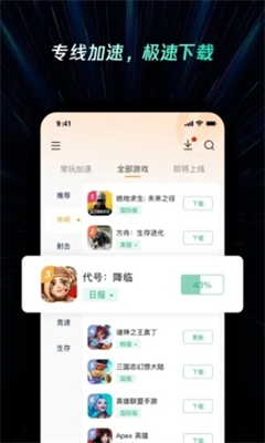 2、以电竞级加速为核心,为千款手游提供网络优化功能。
