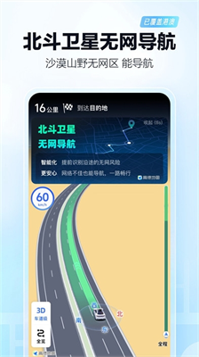 1、完整的地图导航功能,用户可以使用该功能进行地图搜索、路线规划、导航指引等。