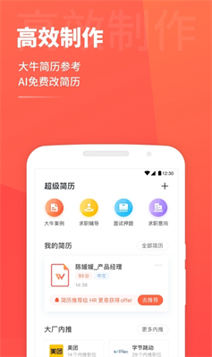 3、根据简历自动匹配,提供名企内推,帮你抢先获得offer。