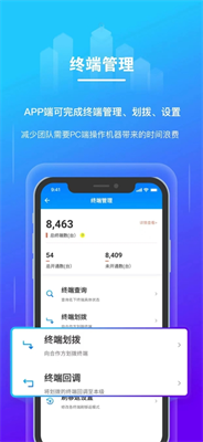 APP端可完成终端管理、划拨、设置,减少团队需要PC端操作机器带来的时间浪费。