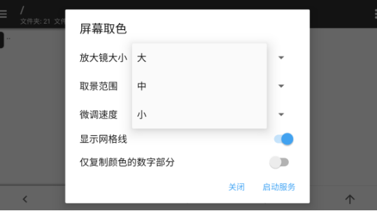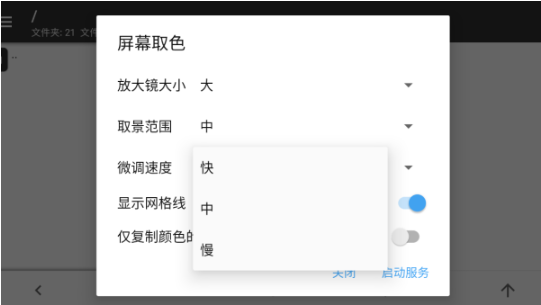 2、在屏幕取色设置界面,大家可以看到各种功能调节入口。
