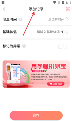 1、打开应用就可以在线进行周期记录,实时的进行轻松备孕。