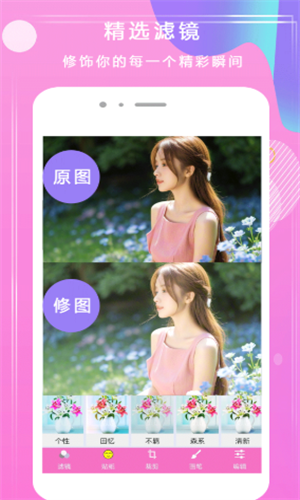 2、为您的照片添加各种精美滤镜,增强照片质感。