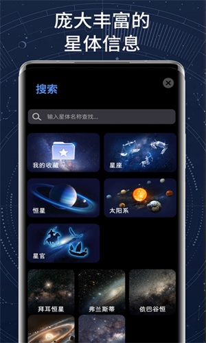 2、快速点击打开搜索功能,马上搜索查找自己想要查询的天文信息