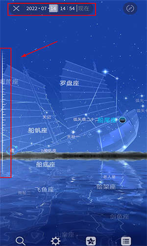 3、不仅可以实时观看到星图,还可以跳转时间,查看当天的星空状态。