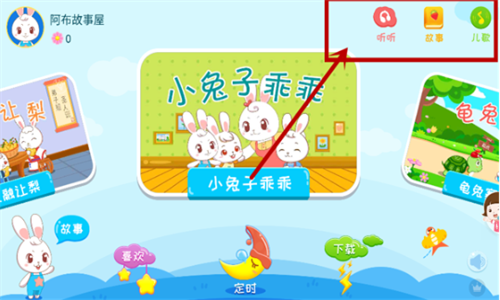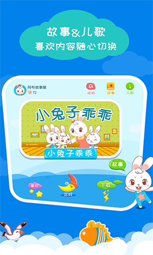 5、提供了不需要阅读的听听专区,里面涵盖了故事与儿歌,解放用户的双眼;