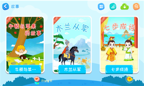 6、覆盖了国内外的丰富故事资源,国外的白雪公主、灰姑娘以及国内的愚公移山等;