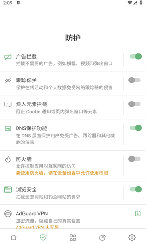 adguard安卓中文版无需ROOT权限,通过更新规则对广告进行拦截,能够拦截游戏和应用内的广告及通知,同时不会影响游戏和应用的正常功能,摆脱恼人广告,在线跟踪,保护您远离恶意软件的最佳方式,使您网络冲浪更快速,更安全,更安逸!