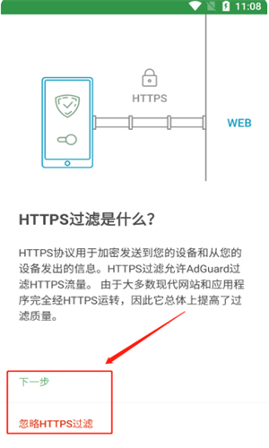 2、可以先了解HTTPS过滤,后选择“下一步”;