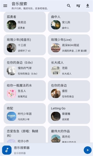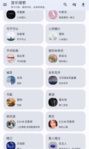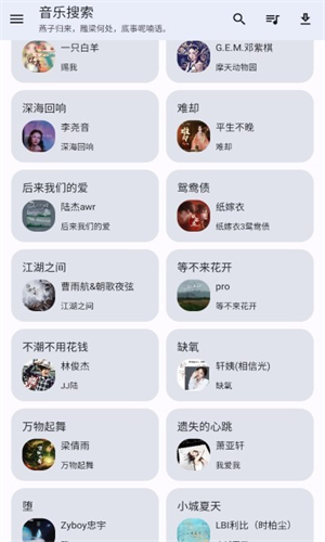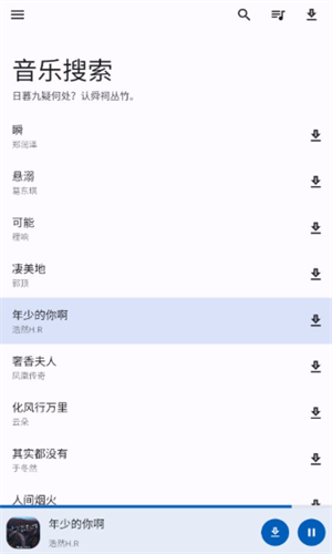 音乐搜索App是个第三方音乐播放软件,界面是Material风格,配色看着舒服,设计特别简洁大方。不用登录,装上就能用,现在只有安卓版。软件布局特别简单,就一个主界面,没有其他乱七八糟的栏目,主界面主要就是搜索功能、榜单还有歌单推荐。除了界面好看,另一个亮点是支持下载,最高能下载无损音质的歌曲。
