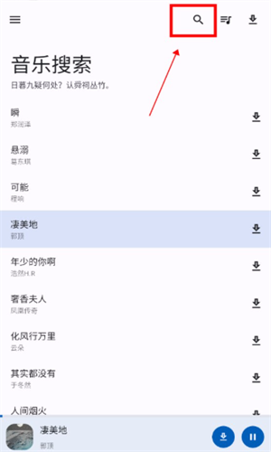 其次我们如果想搜索歌手名字或者歌曲名字都可以在上方点击放大镜按钮