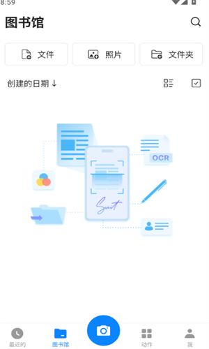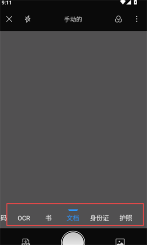 2、拍摄页面可以选择OCR、书、文档等,软件会自动识别,并做出优化调整