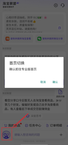 1、打开app以后,如果首页是AI界面,点击最左下角的“AI”,切换到专业版首页