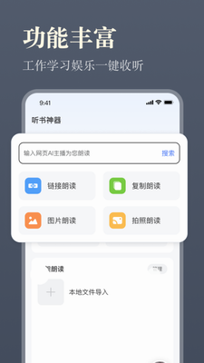 3、智能听书:22位AI主播声线供您选择,可让听书变成一种飞常享受。
