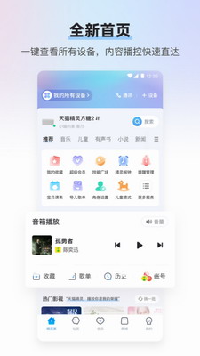 《天猫精灵app下载安装免费版》是一款功能强大实用且为AI智能手机应用,您可以连接和控制该智能产品系统的音响和上千个合作品牌的智能设备,还能在智能设备、智能服务、智能内容之间建立场景化联动,共同打造“懂你的家庭助手”,助你开启轻松便捷的智能生活,同时软件可实现智能家居控制、语音购物、手机充值、音频音乐播放等功能,您可以听故事、讲笑话、查运势、玩游戏、查天气、找手机、问百科、设闹钟/定时器、查食物热量、充话费、查快递、查价格、天猫魔盒控制、天猫超市购物、智能家电操控等等,并且软件提供了全面的智能化控制功能,能够与用户的智能设备相连接,可以实现语音、按键等控制方式,随时随地都可以查看或者控制,不在家也可以进行操作,有需要的用户快来下载体验吧。