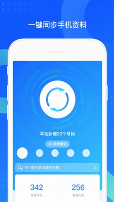 2、备份管理:手机通讯录一键备份至网络,随时同步回手机。