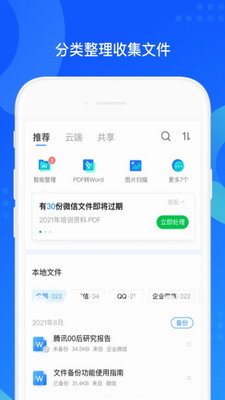 3、文件管理:微信QQ聊天文件备份,智能分类快速查找。