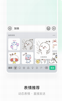 表情包功能非常友好,只需输入关键词,点击出现笑脸的文字内容,就可以看到推荐的表情包,方便快速的发送。并且还可以将显示表情键后的开关打开之后,就可以快捷搜索到相应的表情,这下不愁没有表情包使用了。