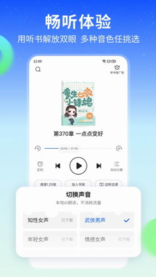 1、软件还提供了语音畅听功能,用户可以选择不同的音色来进行听书,解放双眼,享受阅读。