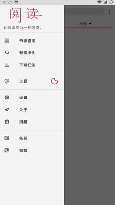 《read阅读app》是一款小说资源丰富且拥有仿真、覆盖、滑动和滚动等多种翻页方式选择的手机阅读软件,软件可满足用户不同的阅读习惯,还支持本地TXT和EPUB文件阅读,手动浏览,超智能扫描等功能,为用户提供了丰富的阅读选择,同时软件更有替换净化功能,打造清爽的阅读环境,去除广告干扰,让读者沉浸于纯粹的阅读世界,致力于为广大小说爱好者提供方便、快捷、舒适的阅读体验,并且软件支持本地txt和ePub格式的阅读,可以满足一些读者的离线阅读需求,可以根据自己设定的规则抓取网络数据,并对网上资源进行抓取搜索。这一功能设计得十分贴心,可以根据自己的需求自主定义规则内容,以此来找到小说资源。