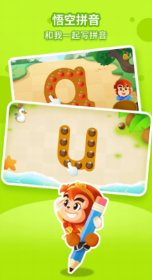 《悟空拼音全课程免费版2024》是一款功能强大实用且专为我们广大的学龄前儿童用户所打造的一款拼音学习类软件,软件可帮助我们的宝宝能够快人一步,成功赢在起跑线上,同时软件通过将游戏与学习的方式相结合,以宝宝都喜欢的孙悟空为主题元素,围绕它给宝宝打造出一个有趣的拼音世界,让宝宝跟着悟空一起来学习拼音,在偶像的引导下学的还是比较容易的,并且在软件内拥有4项不同的游戏剧情学习模式,共计42个游戏,满足孩子学习兴趣,14天的学习,可以让孩子学更多拼音字母,更好的幼小衔接,赢在起跑线上,感兴趣的用户快来下载体验吧。