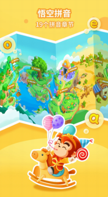 1、悟空拼音以悟空学艺为故事背景,包括14天西游故事和42个趣味游戏。