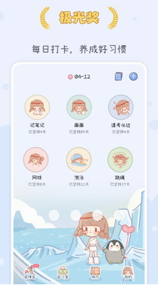 《点点时光破解版vip》是一款功能强大实用且操作简单易上手的记事工具,软件的画风非常的清新可爱,大家可以在这里记录自己的心情、打卡等等,还可以对自己的习惯进行管理,同时软件还提供绘画和涂鸦功能,使打卡记录变得更加有趣和个性化,软件还提供非常赏心悦目的主题风格,玩家可以为自习形象换装,每天都有新体验,并且软件的界面简约小清新,功能全面使用便捷,为用户打造不一样的心情日记本,更全面优质全面的完成记录对应事件记录管理,此外软件的界面和人物采用的都是手绘风格,清新可爱的点点人物,呆萌呆萌的小企鹅,非常治愈少女的心,在软件里每个人手机上都有一个叫点点的虚拟人物,她会陪伴我们一起完成制定好的目标。